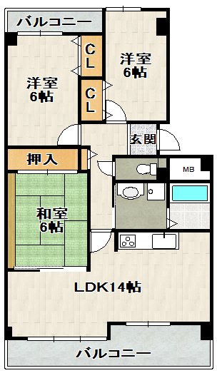 ファミリー様にオススメの各部屋収納サイズも大きめの3LDKです。