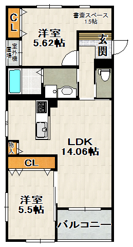 寝室には書斎スペース1.5帖も設けております。