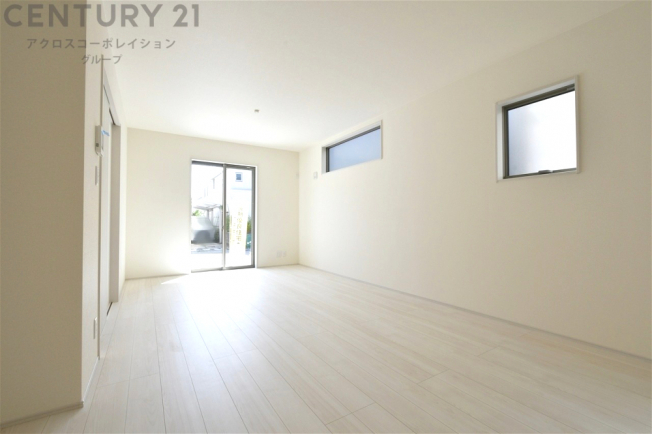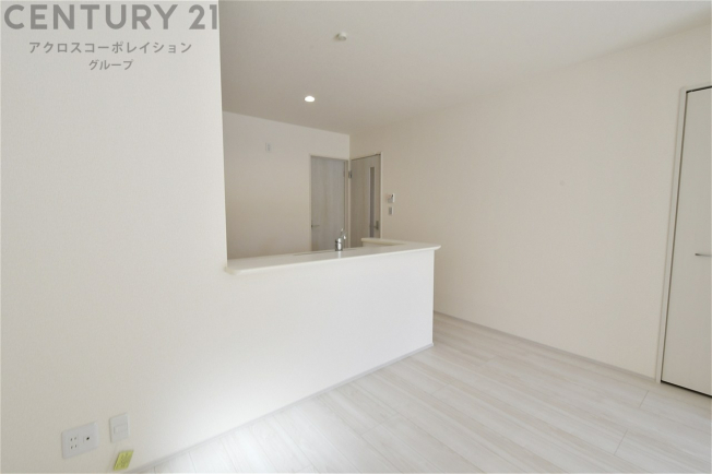 フローリング・建具ともに白を基調としたデザインで、日中大きな掃き出し窓からの採光を反射することで明るい室内の印象にしてくれます♪出っ張りのないスッキリとした間取りで、家具も配置しやすくなっています。