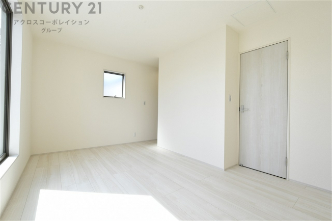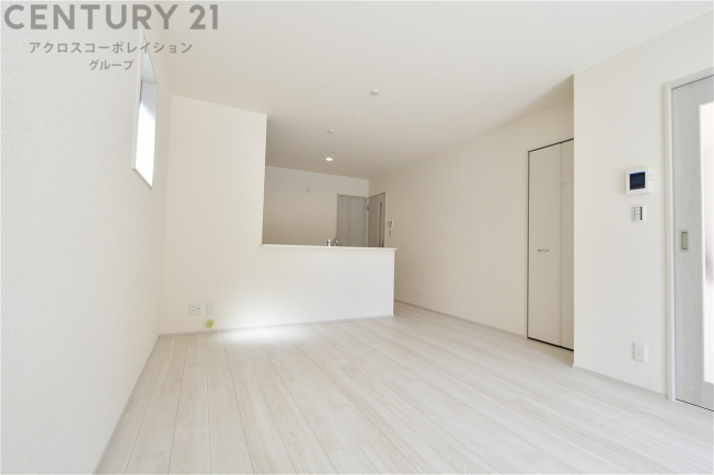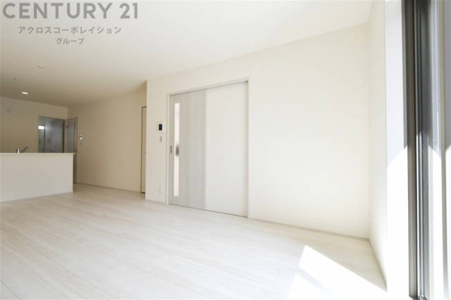 フローリング・建具ともに白を基調としたデザインで、日中大きな掃き出し窓からの採光を反射することで明るい室内の印象にしてくれます♪出っ張りのないスッキリとした間取りで、家具も配置しやすくなっています。