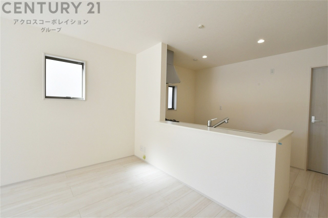 キッチン前のダイニングスペース カウンターキッチンから料理の受け渡し等に便利です。ダイニングセットを置いても十分な広さを確保。