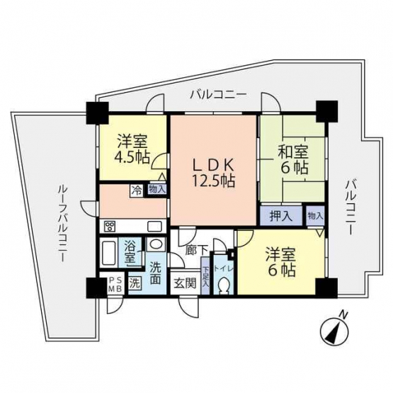 3方バルコニー