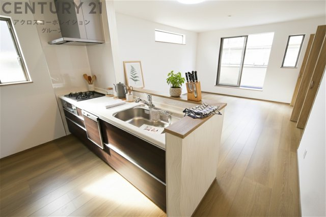 シンプルなデザインと使いやすさを兼ね備えた対面式システムキッチンは、効率的な作業スペースを提供し、家族やゲストとのコミュニケーションを促進します。