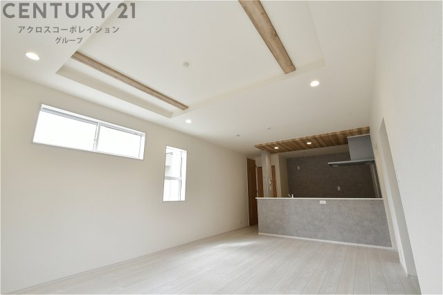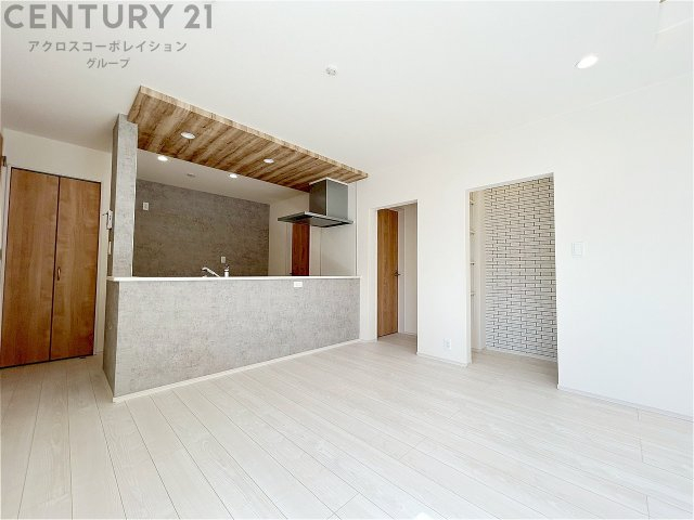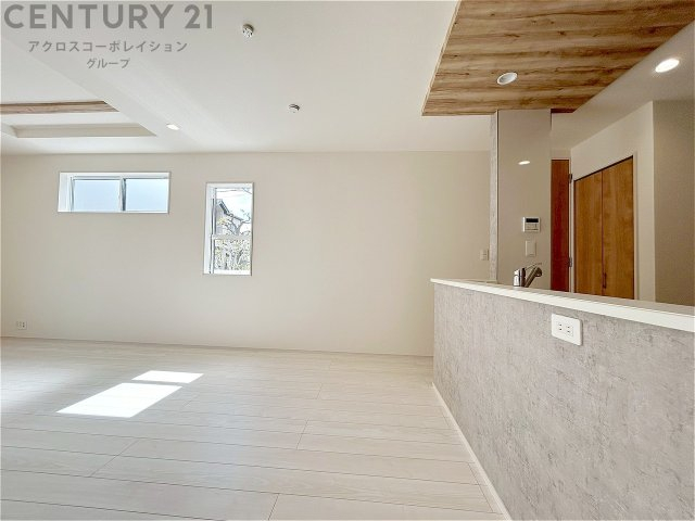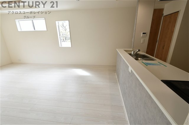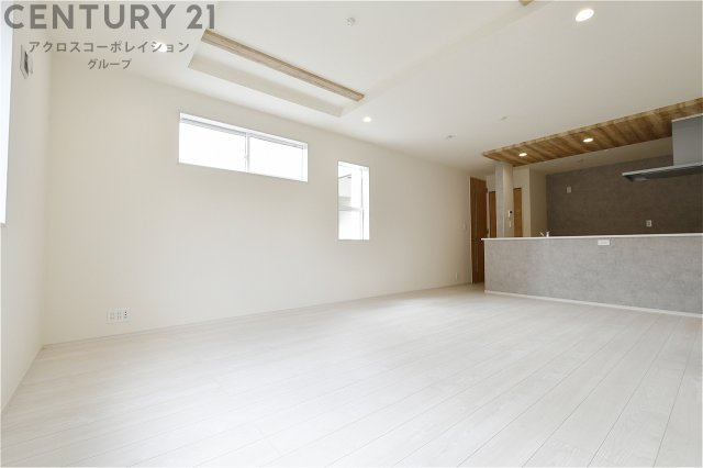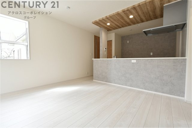キッチン前のダイニングスペース カウンターキッチンから料理の受け渡し等に便利です。ダイニングセットを置いても十分な広さを確保。
