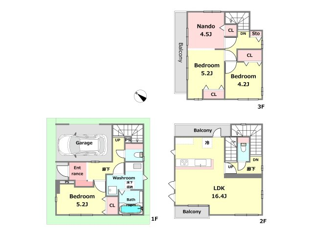 バルコニー3面付き。