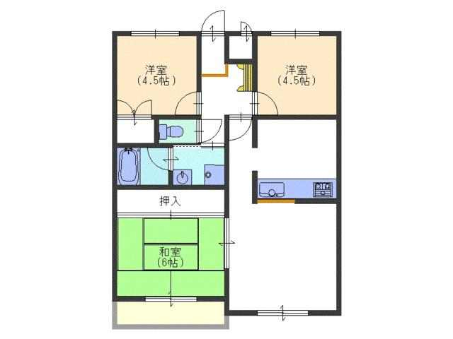 2間の押し入れのある和室6畳