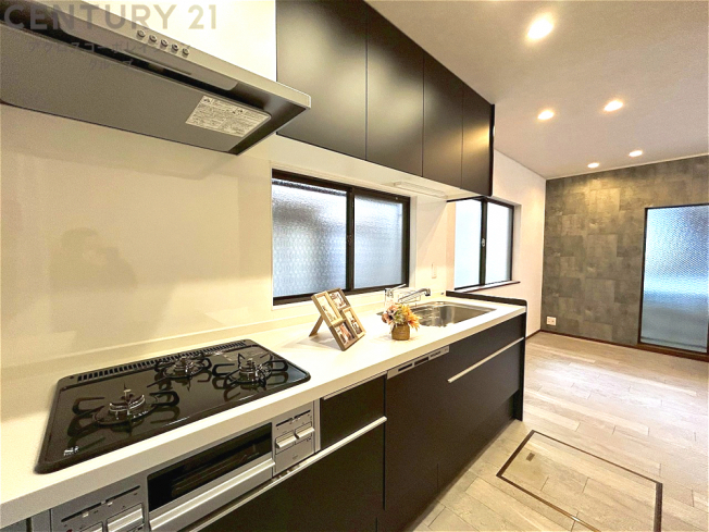 壁付けシステムキッチンはスペースの最大限の有効活用が可能で、動線がスムーズになり調理や準備が快適で効率的に行えます。収納スペースや吊り戸棚が設けられ、調理器具や食器類をスマートに収納できます。