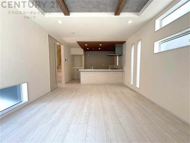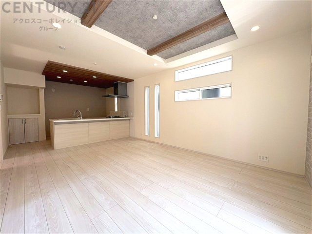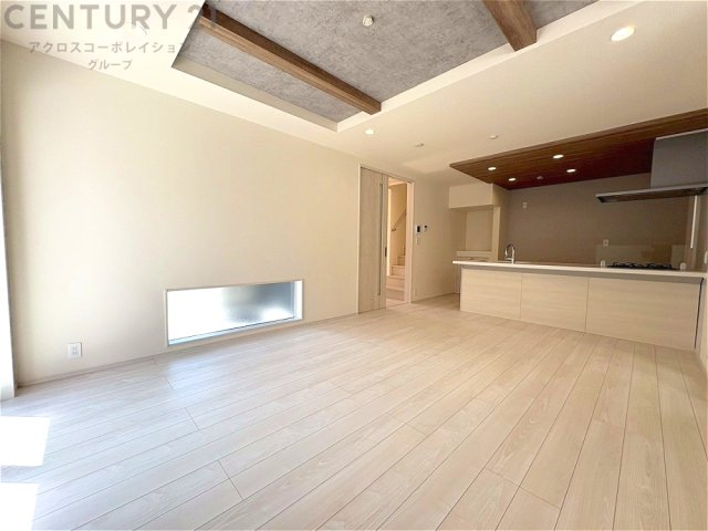 キッチン前のダイニングスペース カウンターキッチンから料理の受け渡し等に便利です。ダイニングセットを置いても十分な広さを確保。