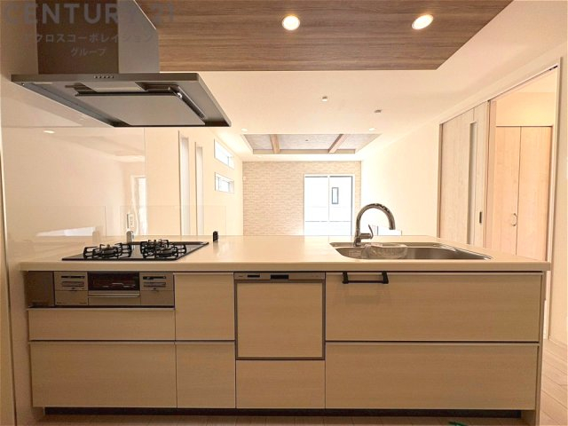 シンプルなデザインと使いやすさを兼ね備えた対面式システムキッチンは、効率的な作業スペースを提供し、家族やゲストとのコミュニケーションを促進します。