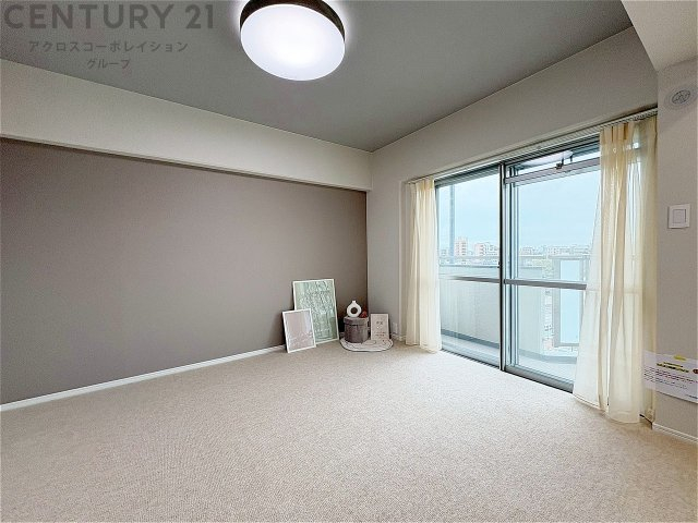 ペールグリーンのアクセントクロスが柔らかい印象の洋室です。