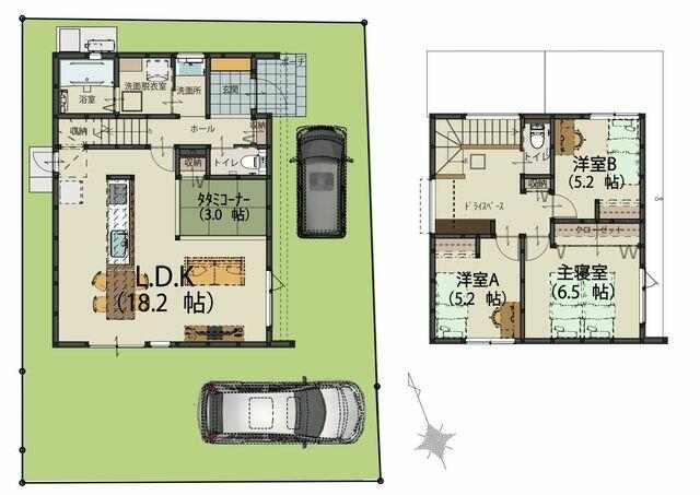 【A号地】LDKは広々18帖。キッチンからリビングやタタミコ