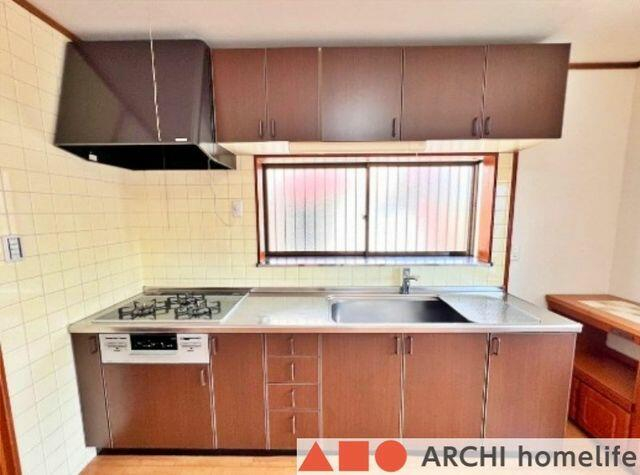 壁付けのキッチン。ワークトップやシンクも広々でお料理しやすい