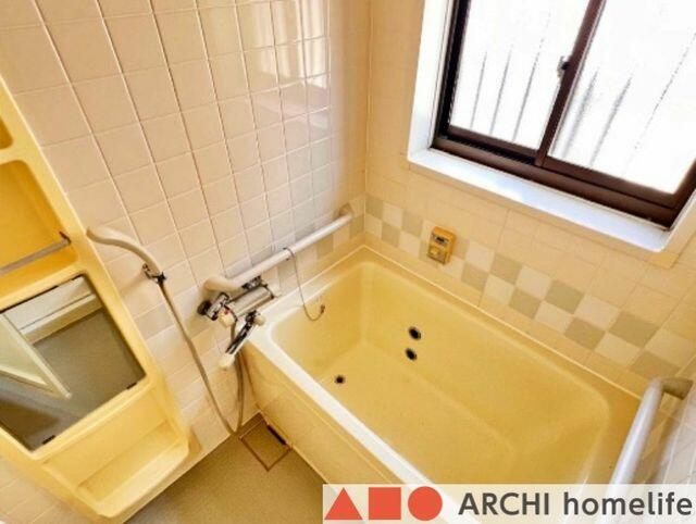 窓のある浴室。浴槽にお湯を溜めてゆっくりと入浴していただけま