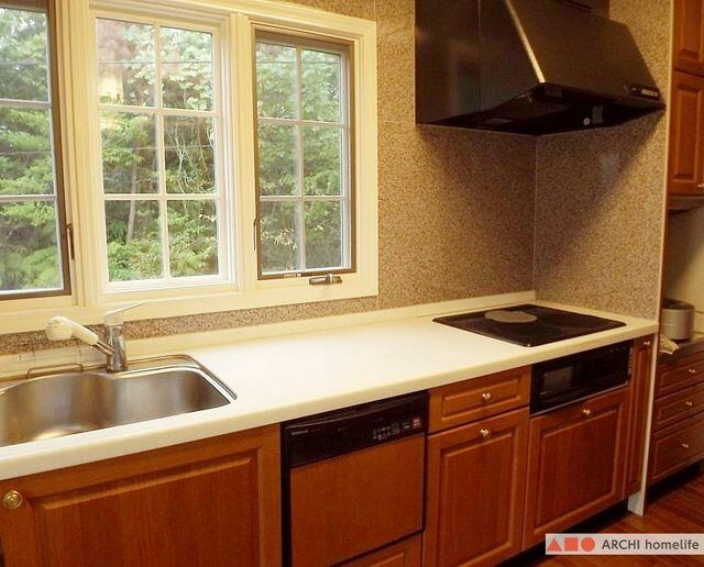 旧松下電工製のシステムキッチン。前面窓で、明るい気分で料理が