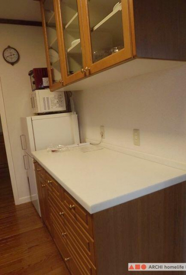 キッチンカップボード。広いので、盛り付けだけでなく、パン作り