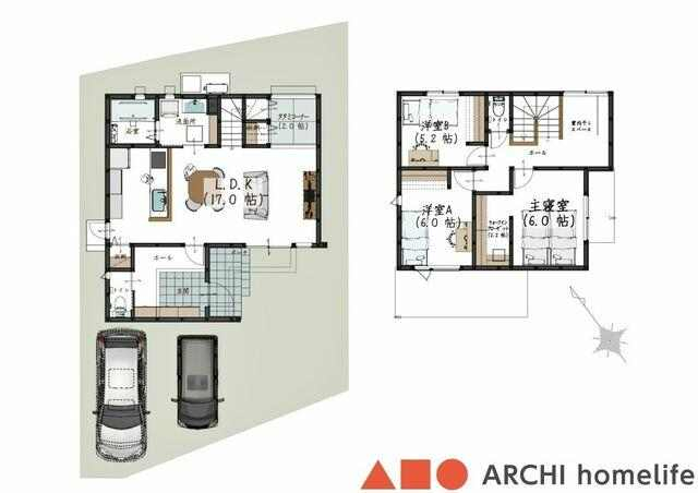 【飾東町庄B】1Fは17帖LDK+タタミコーナー2帖!2Fに