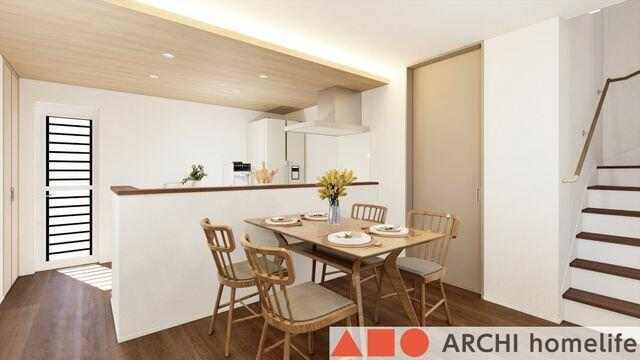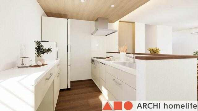 【飾東町庄B】キッチンの正面を腰壁にすることで、LDKが広く