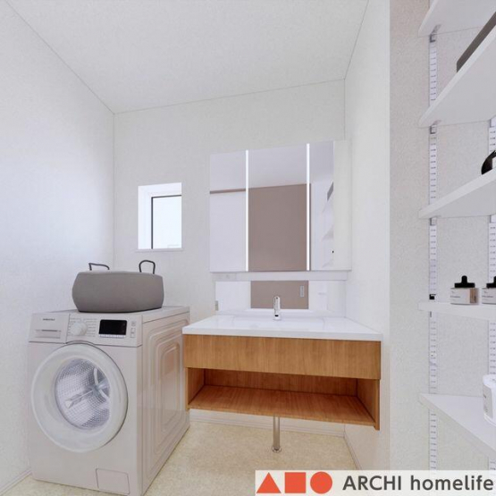 【飾東町庄B】スタイリッシュなフロートタイプの洗面台で、朝の