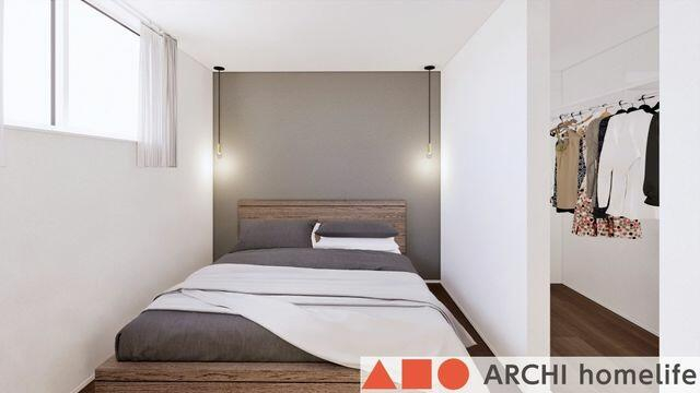 【飾東町庄B】グレーのアクセントクロスと間接照明がお洒落な主
