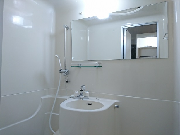 大型ミラーが魅力のバスルームです。