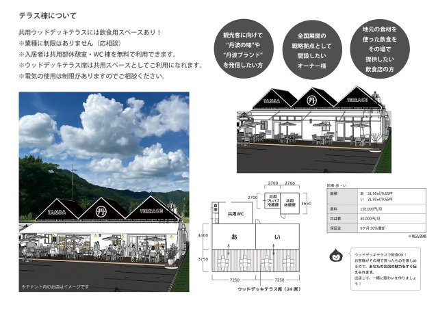 春日インターおりてすぐの国道沿いの好立地!農家さんが好きなスペースで直売できる月極ガレージプロジェクト「丹波春日小町」!テラス棟2区画の出店者募集中!1区画31.90㎡(9.64坪)2区画利用も可能です!