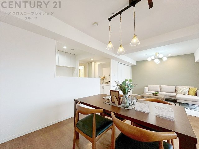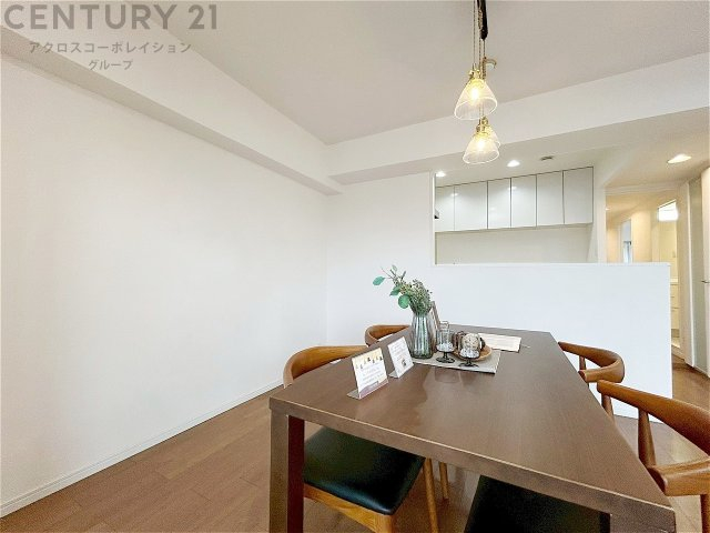 キッチン前のダイニングスペース カウンターキッチンから料理の受け渡し等に便利です。ダイニングセットを置いても十分な広さを確保。