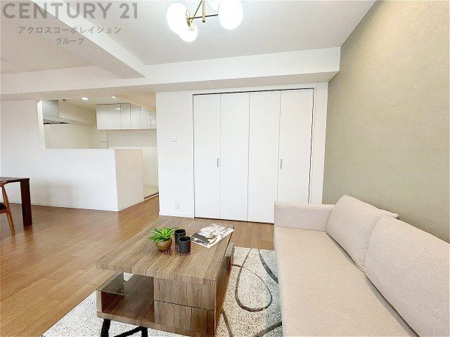 南西向きの居間リビングは、豊かな自然光が差し込み一日中明るく快適。開放感と温もりに包まれる心地よい空間です。