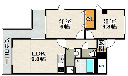 オートロック付きの2LDKマンションです。