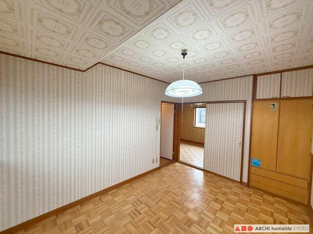 たっぷりの押入収納がある6帖和室から廊下方面を撮影。