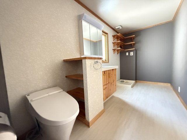 トイレ・洗面台、洗濯機置き場が並ぶ脱衣室。